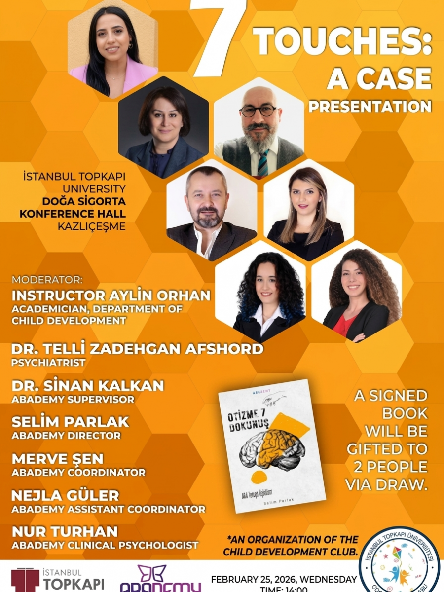 Expert names in the field of autism are coming together for this special event organized by the Istanbul Topkapi University Child Development Club. One of the most prominent speakers of the event, Dr. Sinan Kalkan (ABADEMY Supervisor), will share his extensive knowledge and field experience through detailed case studies.