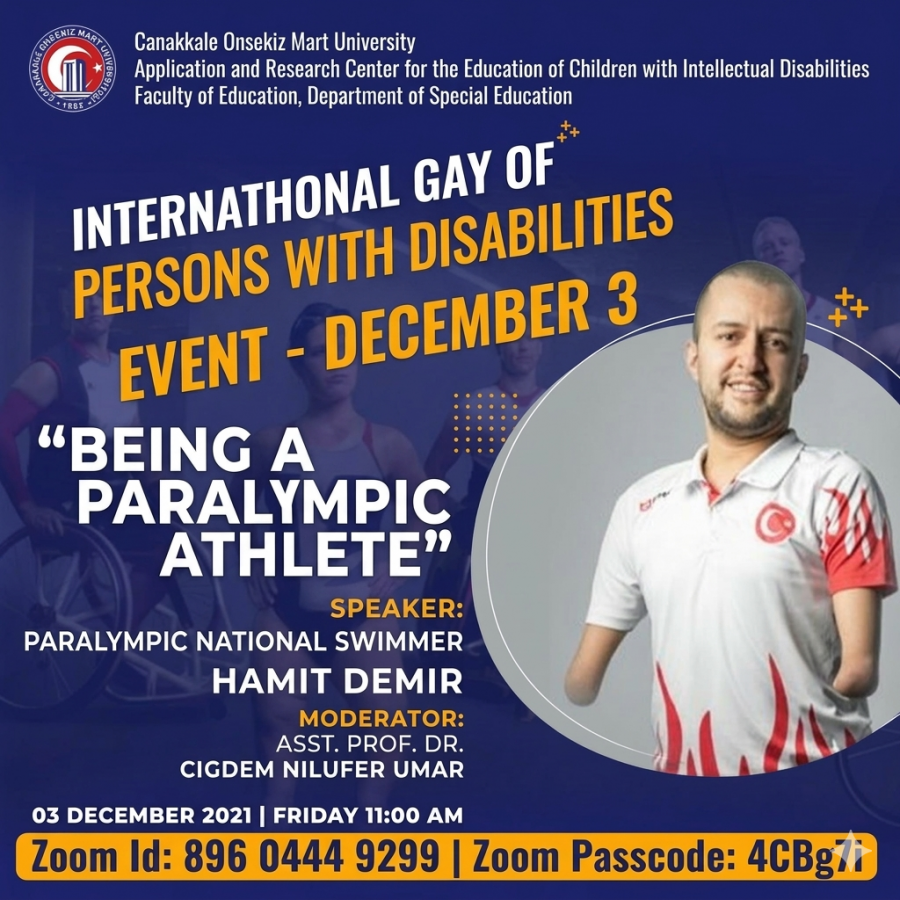 We invite everyone to our talk titled ''BEING A PARALYMPIC ATHLETE'' which will be held via Zoom on Friday, December 3, 2021, at 11:00 AM.